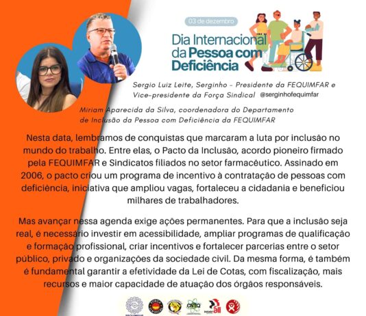 Na próxima quinta-feira, dia 13 de novembro, o presidente da FEQUIMFAR e vice-presidente da Força Sindical, Sergio Luiz Leite, Serginho, vai participar...