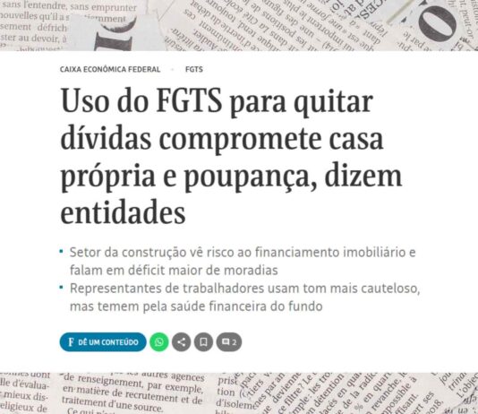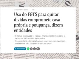 Clipping – Uso do FGTS para quitar dívidas compromete casa própria e poupança, dizem entidades
