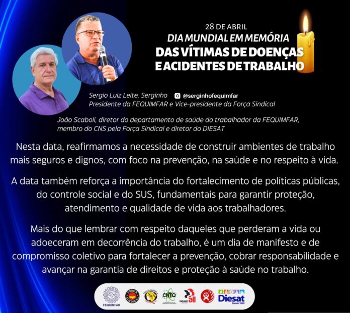 ArtigosSaúde 28 de abril – Dia Mundial em Memória das Vítimas de Doenças e Acidentes de Trabalho De Amanda - 28 de abril de 2026 0 7 Partilhar no Facebook Tweet no Twitter