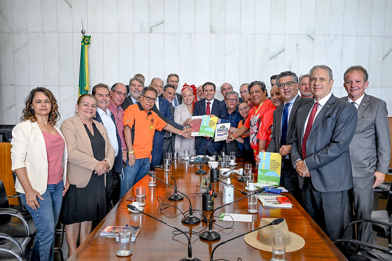 Lideranças sindicais entregam Pauta da Classe Trabalhadora ao Presidente da Câmara, Hugo Motta, reforçando unidade e defesa de direitos no Congresso Nacional.