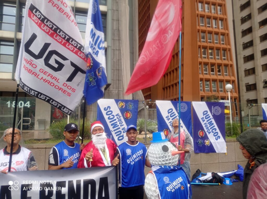 Os Químicos da Força estiveram hoje, 9 de dezembro, junto às centrais sindicais, em um ato na Avenida Paulista para pressionar o Banco Central a reduzir imediatamente a taxa Selic, considerada um entrave ao crescimento econômico brasileiro.