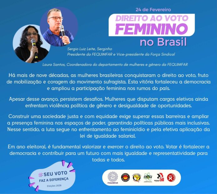 Palavra do Presidente Conquista do voto feminino completa 94 anos De Amanda - 24 de fevereiro de 2026 0 5 Partilhar no Facebook Tweet no Twitter
