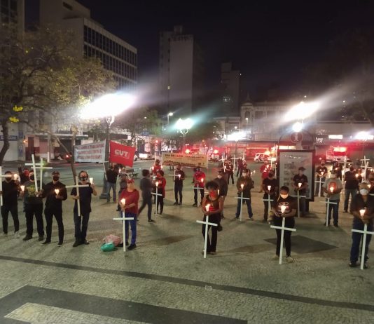 Dia Nacional de Luto e Luta – Químicos de Cosmópolis e Sindicatos da região levam luto e luta ao Largo do Rosário em Campinas