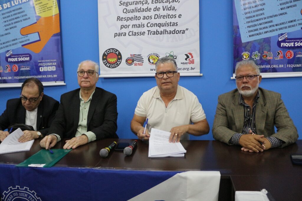 Nesta quinta-feira, 13 de novembro, lideranças da FEQUIMFAR, Sindicatos filiados e representantes patronais do Grupo CEAG-10 da FIESP assinaram a Convenção Coletiva de Trabalho que vai beneficiar mais de 130 mil trabalhadores distribuídos nos segmentos químicos, plástico, petroquímicos, abrasivos, fertilizantes, cosméticos, tintas e vernizes, entre outros.