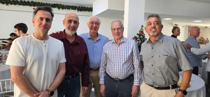 Nesta quarta-feira, 3 de dezembro, Edson Dias Bicalho, secretário geral da FEQUIMFAR e presidente do Sindicato dos Químicos de Bauru e Região, Herbert Passos, coordenador nacional da SNQ e presidente do Sindicato dos Químicos da Baixada Santista, e Celso Ricardo Pinho, diretor do Sindicato dos Químicos da Baixada Santista participaram do almoço de confraternização promovido pelo SINPROQUIM (Sindicato das Indústrias de Produtos Químicos para Fins Industriais e da Petroquímica no Estado de São Paulo).