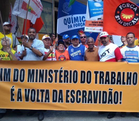 Químicos presentes no protesto contra fim do Ministério do Trabalho