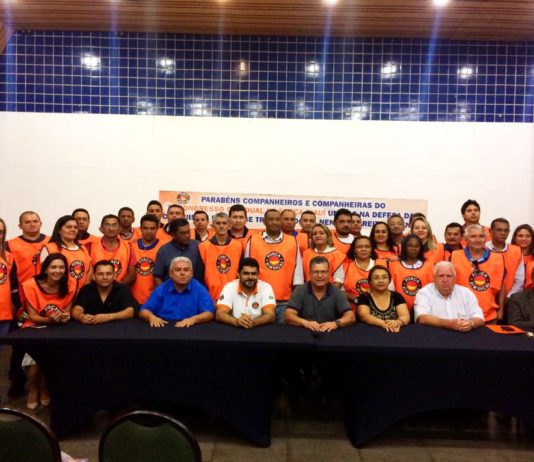 Químicos da Força junto às Centrais no lançamento do abaixo-assinado em defesa da previdência pública