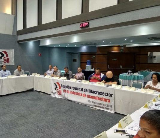 Químicos na reunião regional da IndustriALL junto ao setor macro das indústrias de manufatura