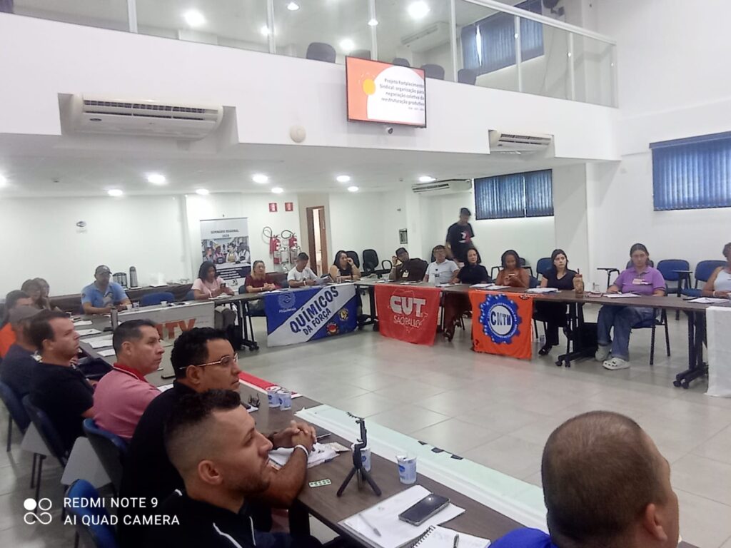 A atividade reúne dirigentes sindicais para debater os desafios das transformações no mundo do trabalho e construir estratégias coletivas de atuação. Participam lideranças dos Químicos da Força Sindical e CUT, Metalúrgicos da Força Sindical e CUT, dos Têxteis, couro, calçado e vestuário Força Sindical e CUT e dos Borracheiros.