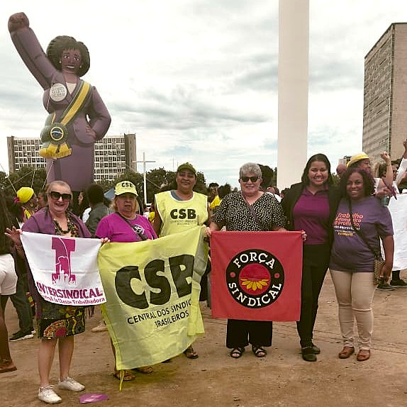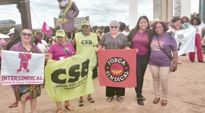Os Químicos da Força fortaleceram a Marcha de diferentes formas: o Sindicato dos Químicos de Rio Claro colaborou com transporte às participantes que foram até Brasília; e os Químicos de Ribeirão Preto também reuniram mulheres da região para a Marcha.