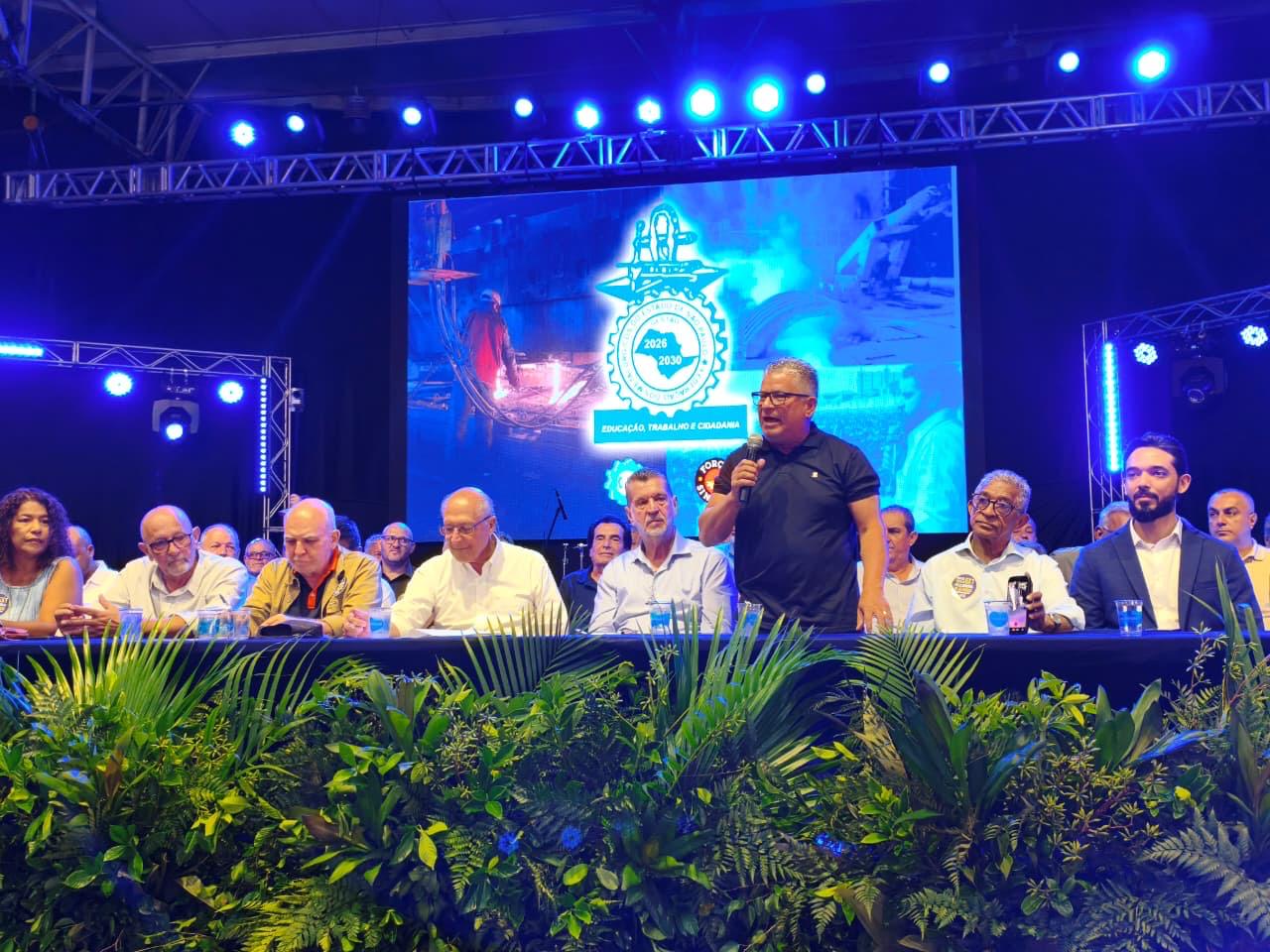 Durante o evento, Miguel Torres e Eliseu reforçaram a luta pela redução da jornada de trabalho, a defesa dos direitos trabalhistas e destacaram a importância das eleições de 2026 para deputados, senadores, governadores e presidente da República.